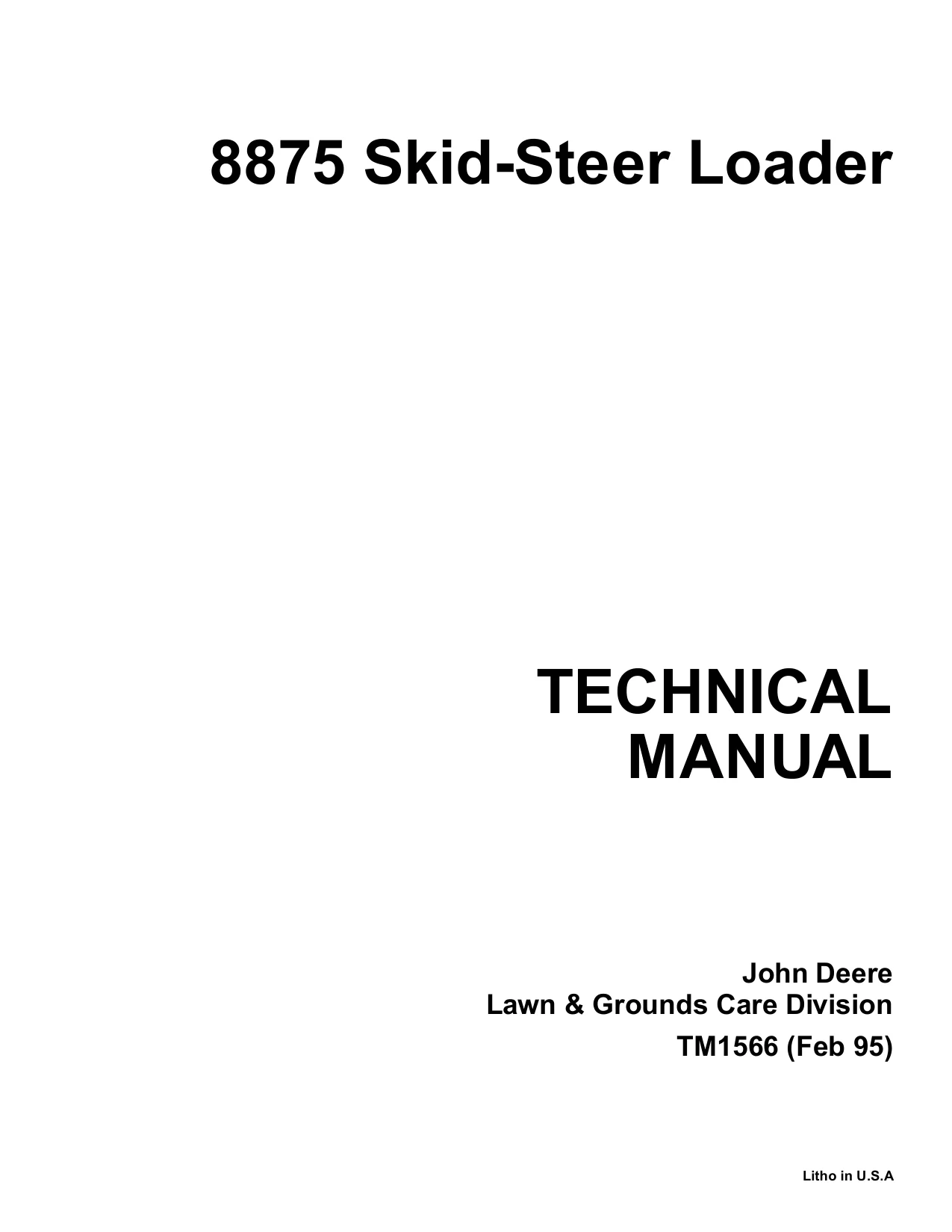 John Deere Skid Steer Loader 8875 tm1566 Technical Manual