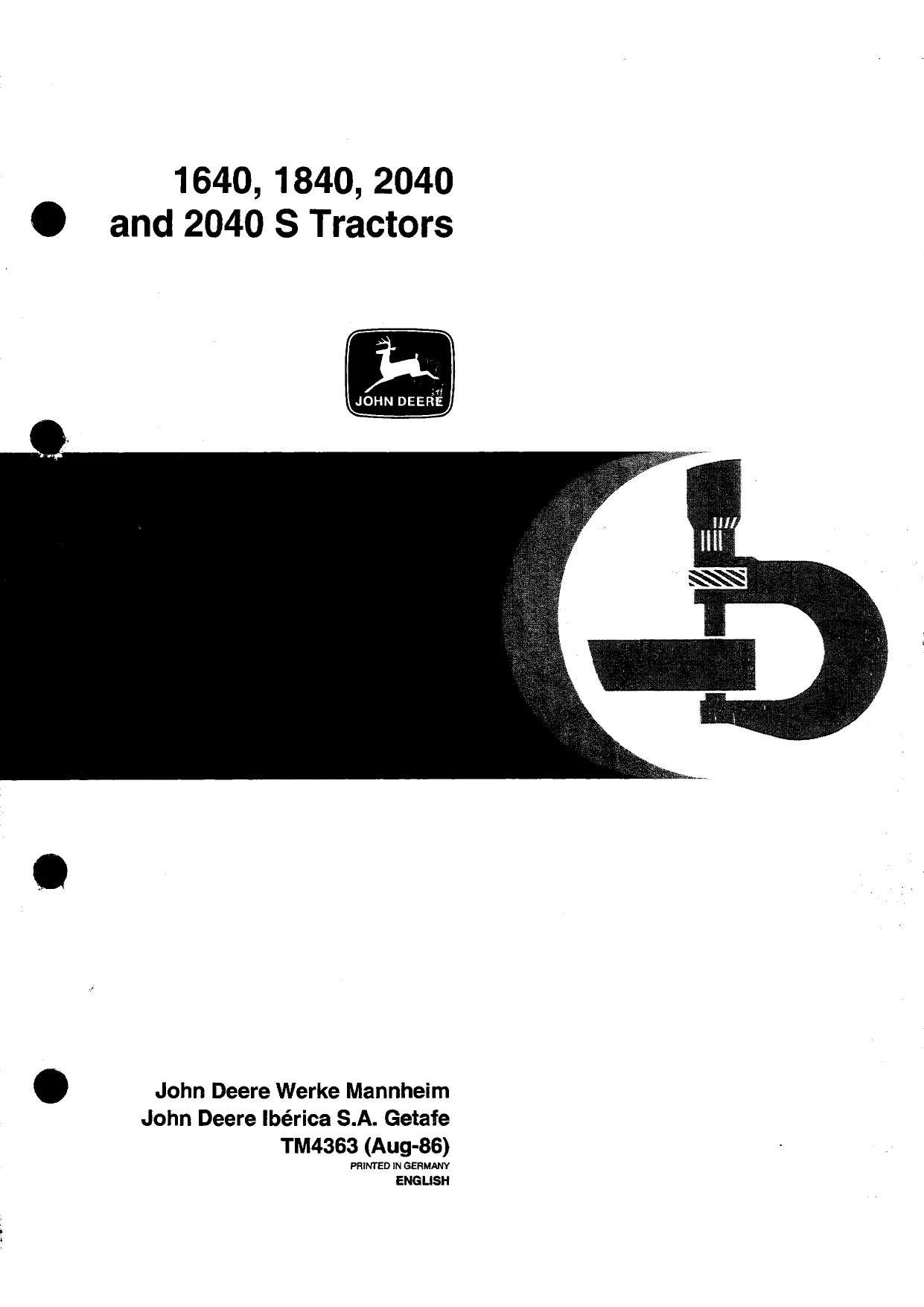 John Deere Tractor 1640 1840 2040 2040 S Technical Manual