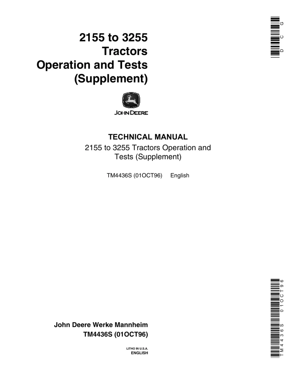 John Deere Tractors 2155 2355N 2355 2555 2755 2855N 2955 3155 3255 TM4436S Technical Manual