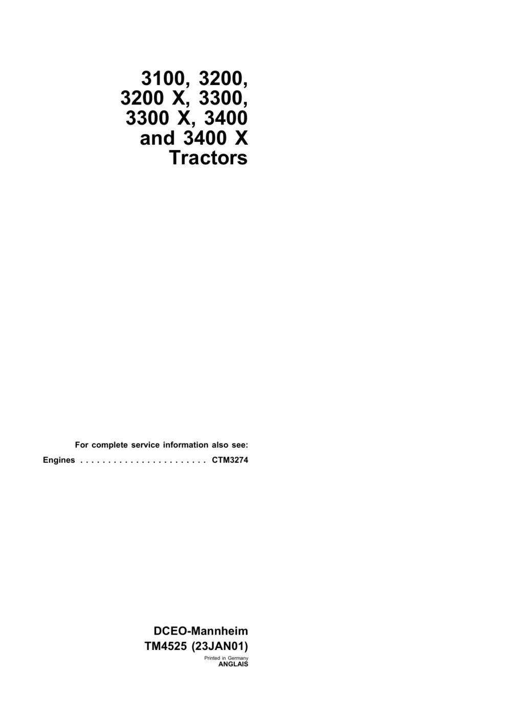 Instant download John Deere Tractors 3100 3200 3200 x 3300 3300 x 3400 3400 x Technical Manual!