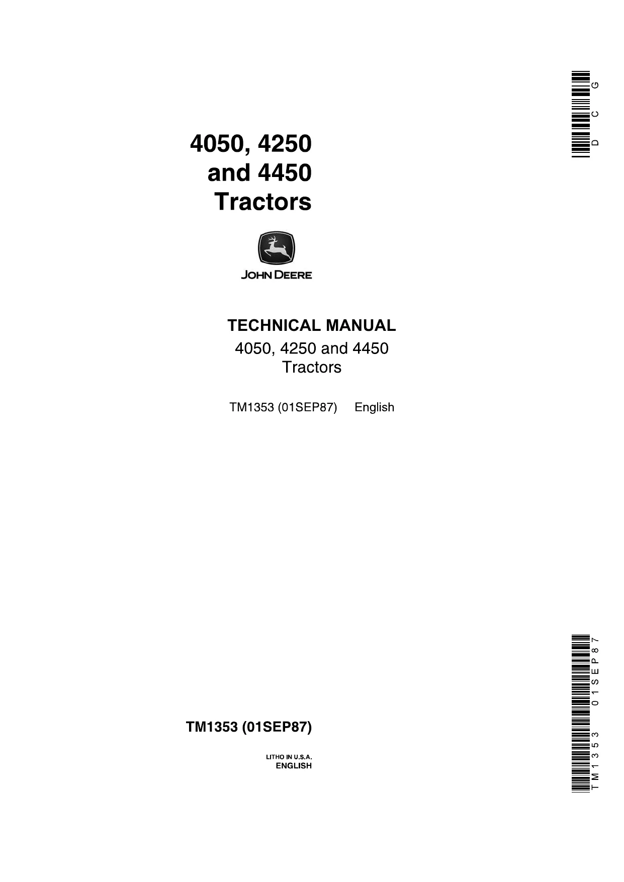 John Deere Tractors 4050 4250 4450 Technical Manual