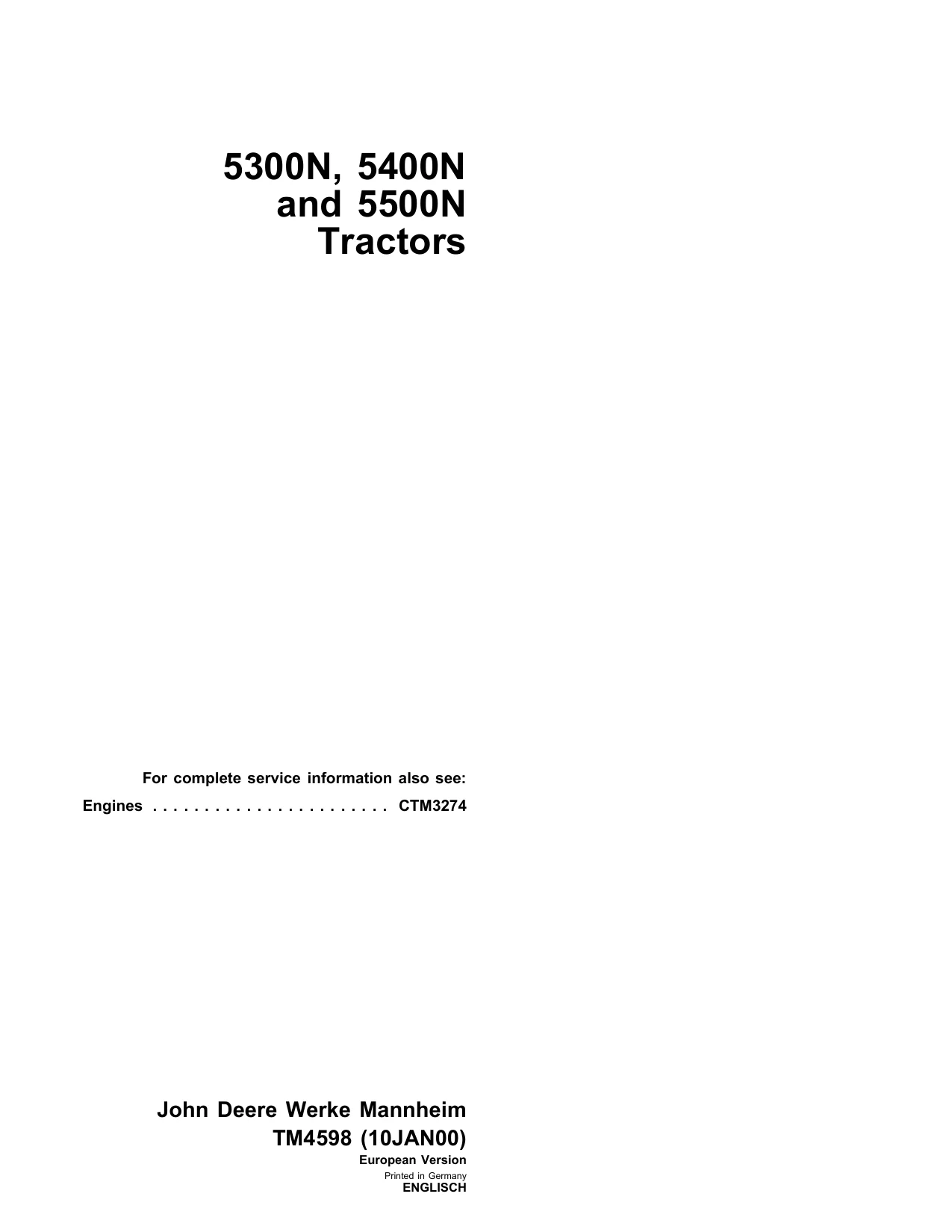Instant download John Deere Tractors 5300n 5400n 5500n tm4598 Technical Manual!