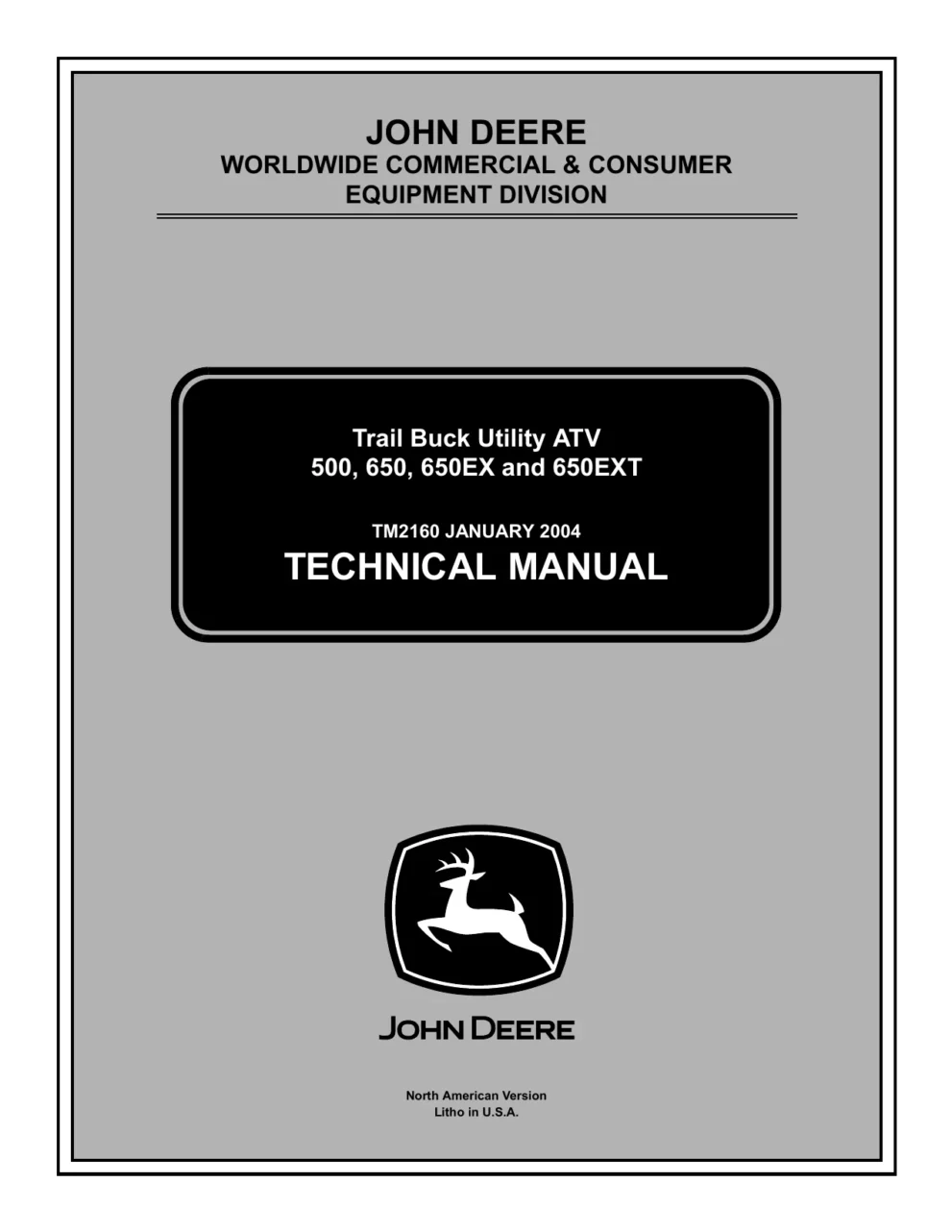John Deere Trail Buck Utility ATV 500 650 650EX tm2160 Technical Manual