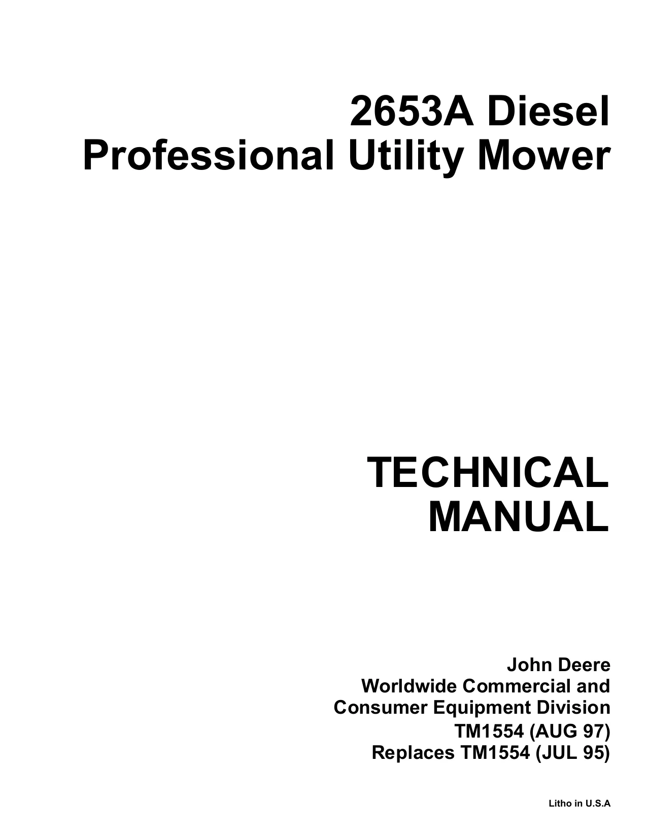 Instant download John Deere Utility Mower 2653a tm1554 Technical Manual!