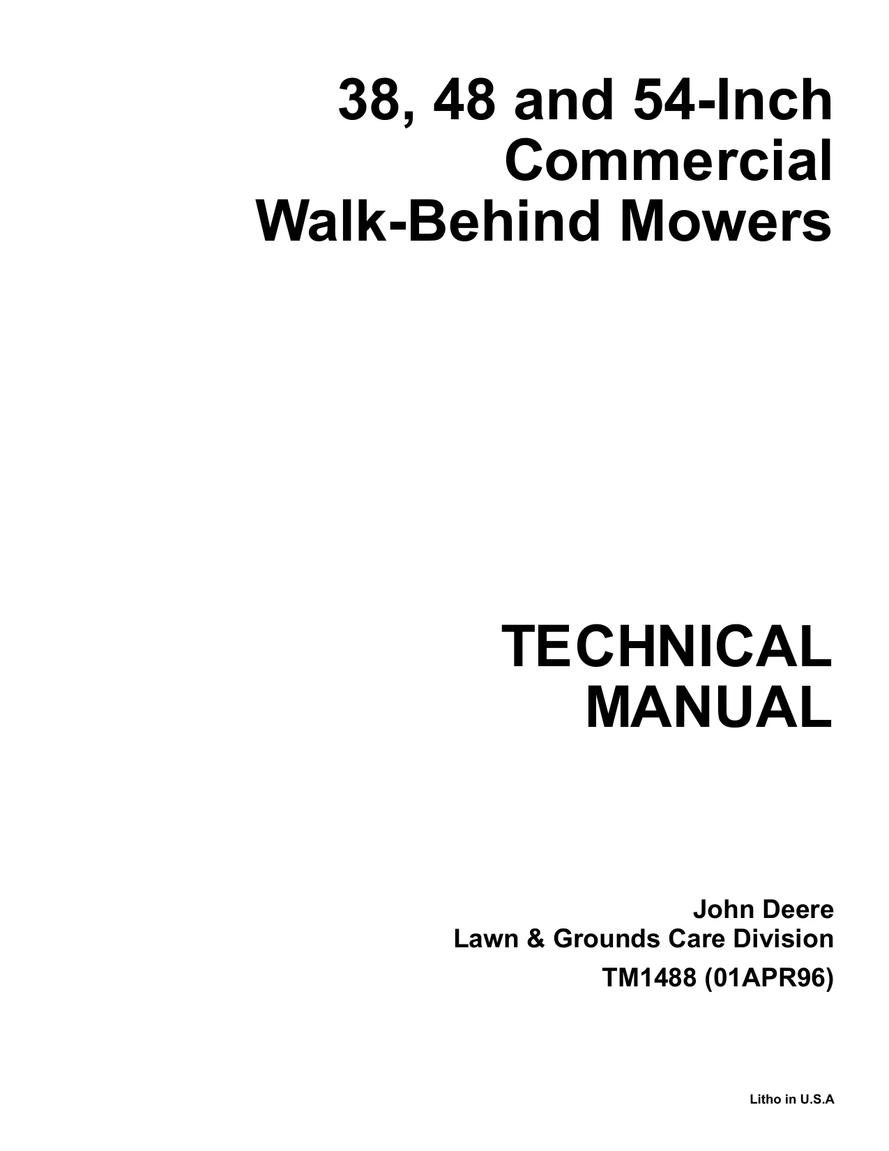 John Deere Walk Behind Mowers 38 48 54 INCH tm1488 Technical Manual