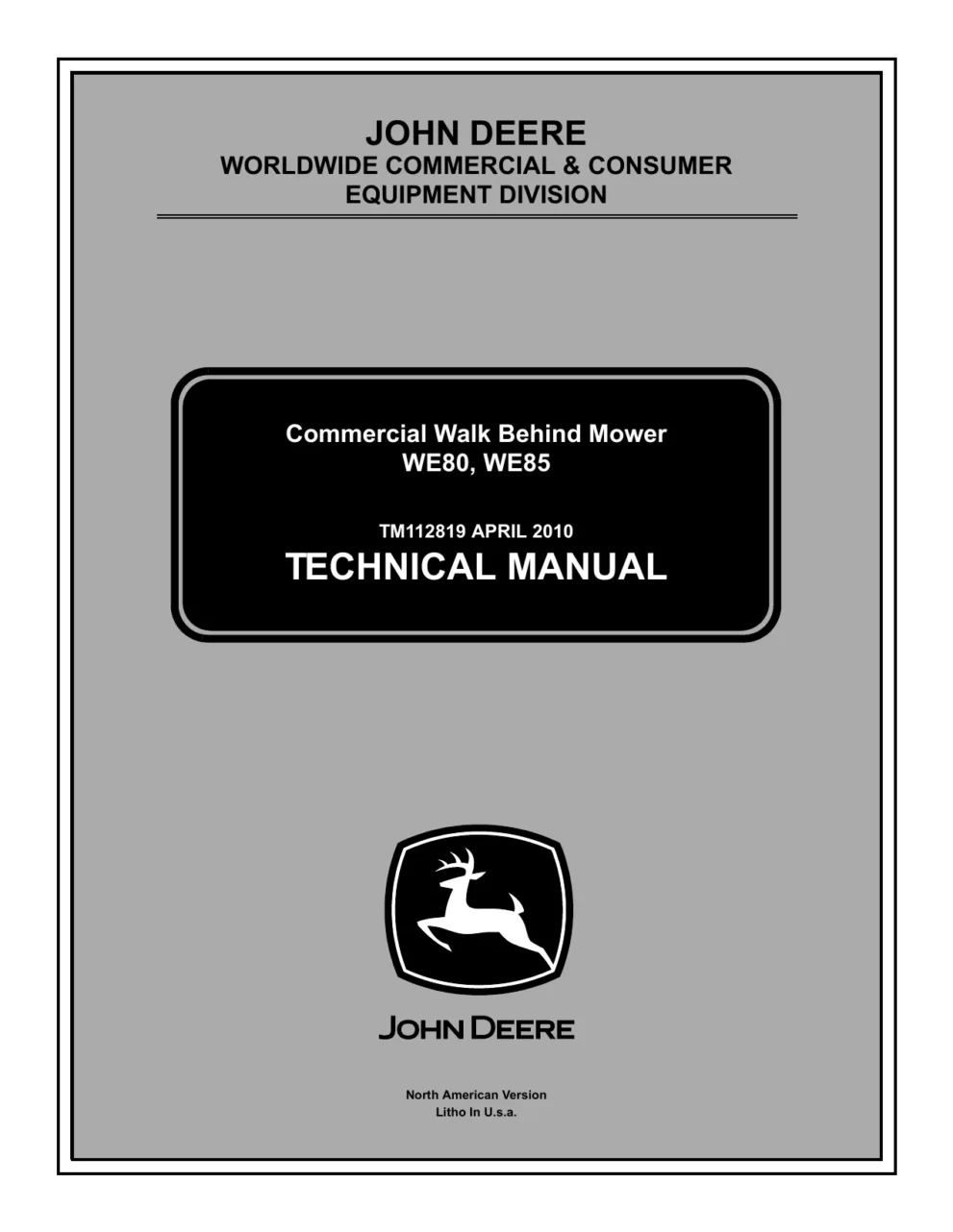 Instant download John Deere Walk Behind Mowers WE80 WE85 TM112819 Technical Manual!