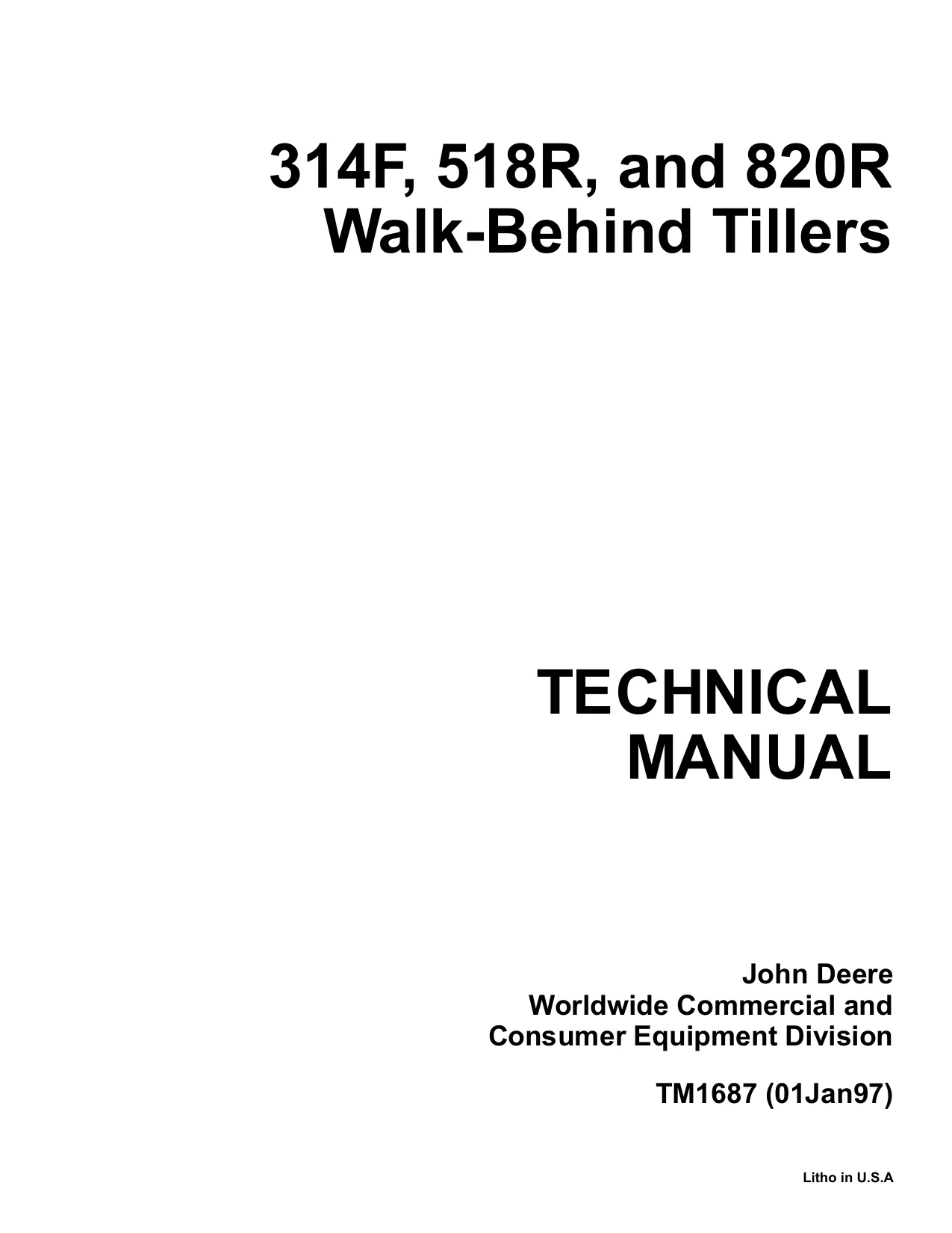 John Deere Walk Behind Tillers 314F 518R 820R tm1687 Technical Manual
