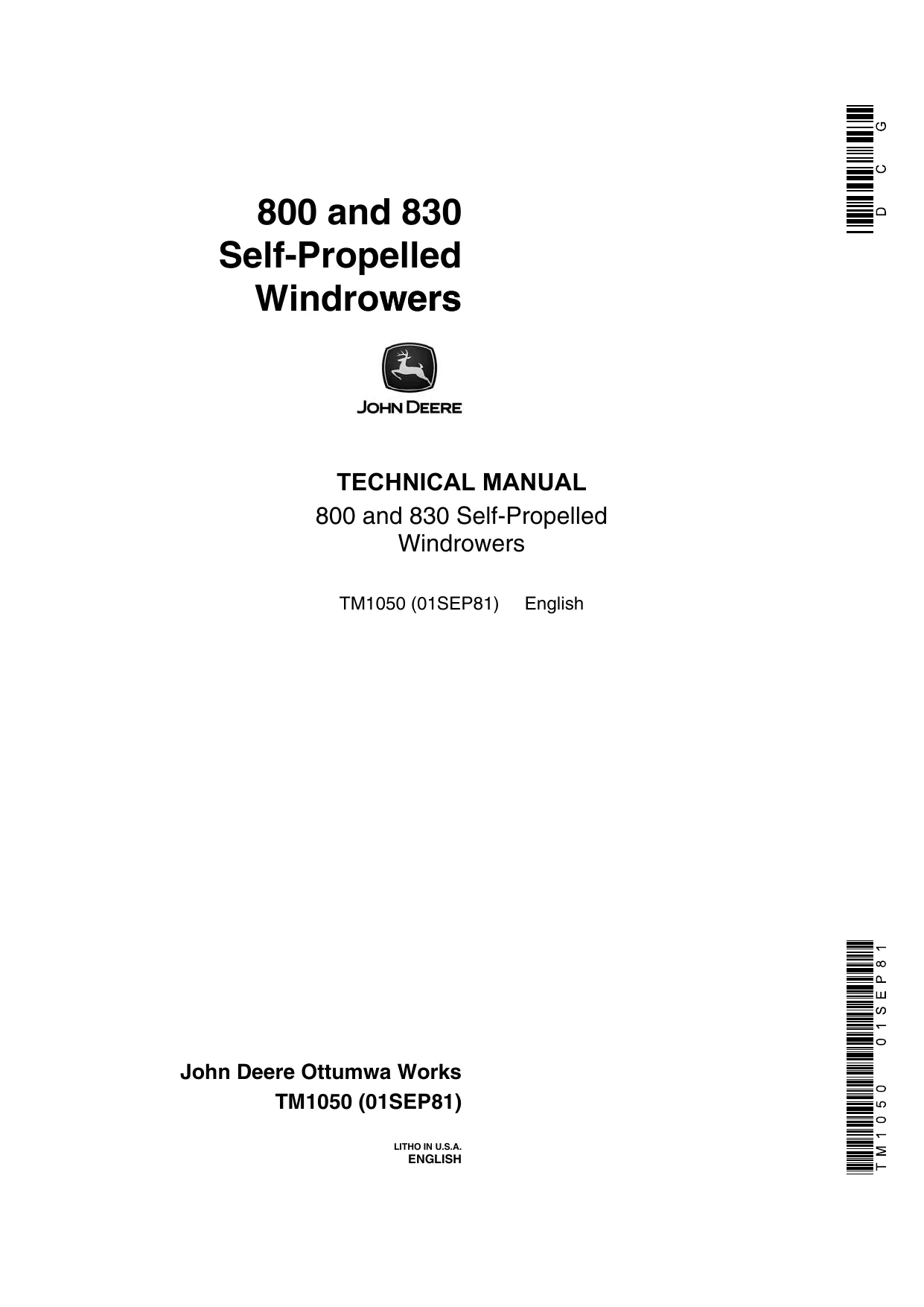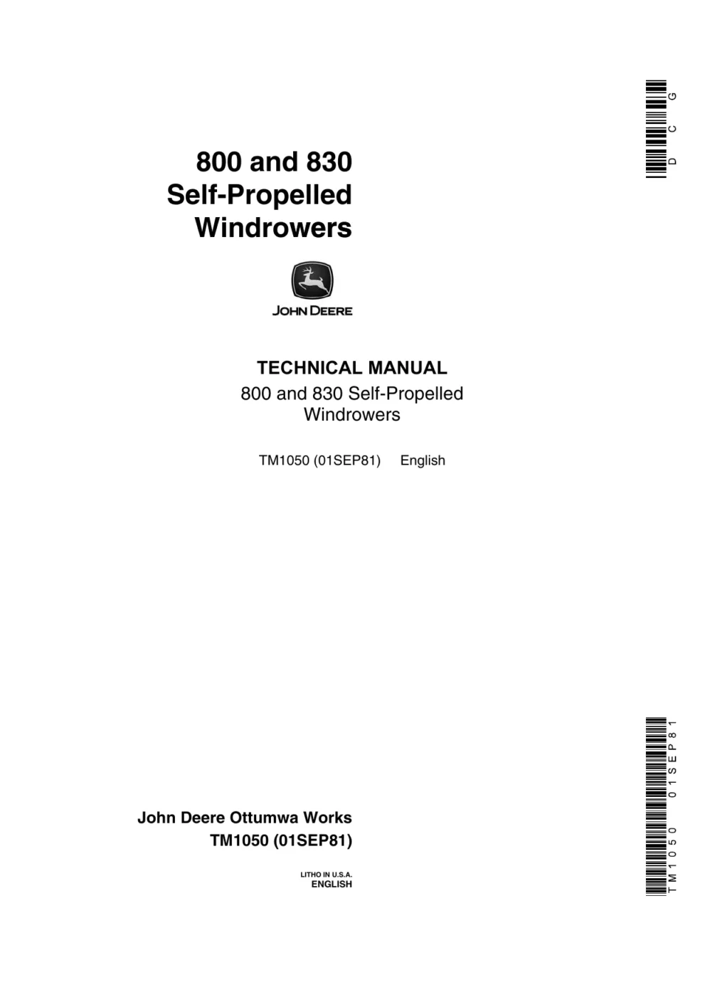 John Deere Windrower Self Propelled 800 830 Technical Manual