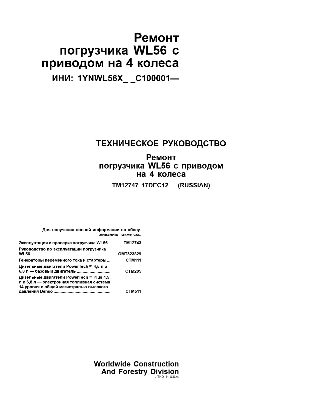 Instant download John Deere WL56 Wheel Loader Service Repair Technical Manual!